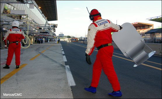Back in the garage there was a moment’s hesitation as those watching the TV monitors gaped in disbelief before instinct and training took over. Like ants disturbed in their nest, red-suited RML personnel were suddenly busying themselves for action. Tiredness was wiped from their faces along with the sweat as they hurried to take up the tasks they knew were theirs. Phil Barker lived up to his name, issuing commands with the minimum of words. While others marvelled at the fact that the incident had taken place at the very entrance to the pitlane, four mechanics were already running towards the car, Barker’s strict instructions not to “cross the line” ringing in their ears.
