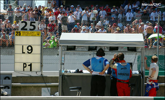 If the challenge from the #37 had gone, the #36 Courage was still in the chase. Tommy couldn’t afford to ease back too much, and the 73rd running of the Le Mans 24 Hours offered similar tension throughout. In every class, there was a battle in progress for the podium, with leaders and chasers each within sight of the other. Not until the final ten minutes did it appear that the protagonists had accepted their fate, and while the overall winners, two Audi R8s and the sole surviving Pescarolo formed up to stage the perfect photo-finish, realisation dawned upon the hot and weary faces around the RML garage that the could actually win.