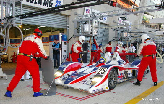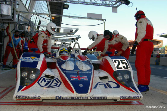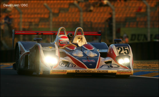 When Gregor Fisken took the Intersport Lola back into the pits five minutes later, it handed 26th place and a potential foothold on the third step of the LMP2 podium to RML's MG Lola. Tantalisingly close, just a lap and a half ahead, lay the #36 Courage, but overall status was nearer at hand. Erdos duly passed the Sebah Porsche, depriving Dane Thorkild Thyrring of 25th place and setting the #25 MG Lola in his stead.
